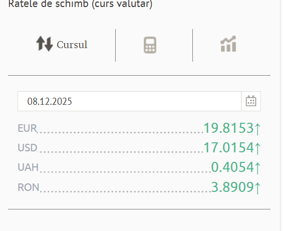 Leul moldovenesc a înregistrat o slăbire în fața euro și dolarului american, conform datelor publicate de Banca Națională a Moldovei.