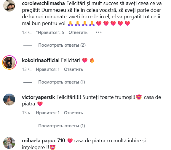 Imaginile publicate au adunat rapid zeci de mesaje de felicitare, iar fanii nu au întârziat să le ureze „Casă de piatră” și o viață plină de fericire.