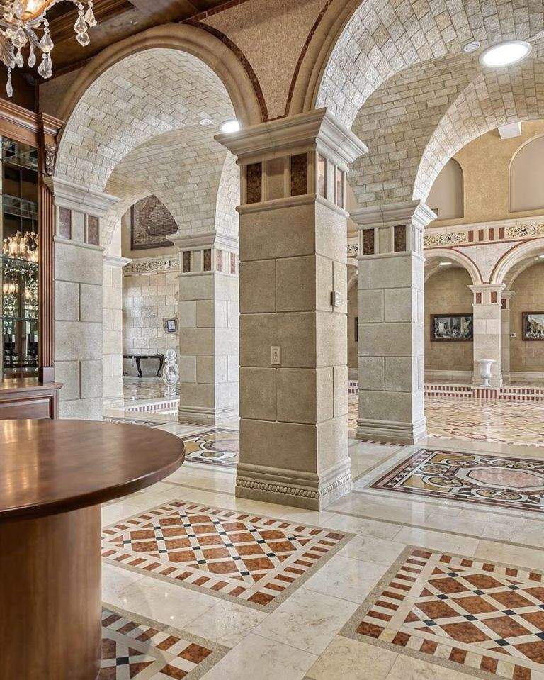 Proprietatea se întinde pe mai bine de 1.600 de metri pătrați, având tavane înalte de nouă metri, grădini extrem de îngrijite, o sală de cinema, fântâni arteziene cu jocuri de apă și chiar un spațiu pentru șapte mașini, plus loc de depozitare pentru barcă.