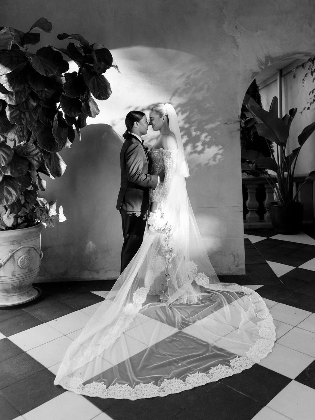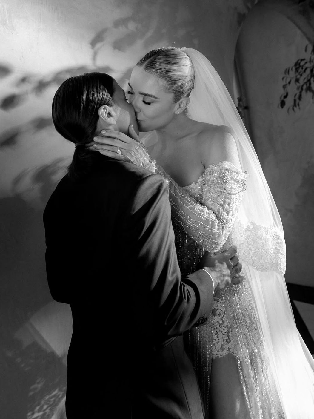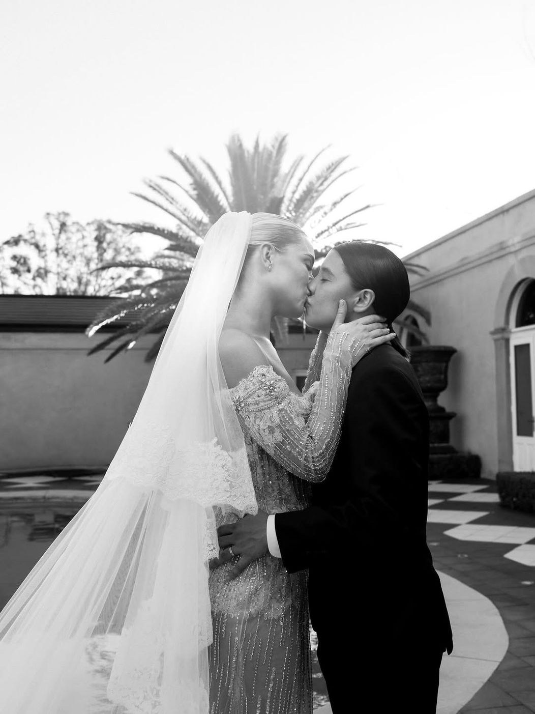 Cuplul a organizat o petrecere impresionantă, iar toți invitații au purtat ținute negre. Jurămintele au fost rostit în curtea din față a vilei Dionysus.