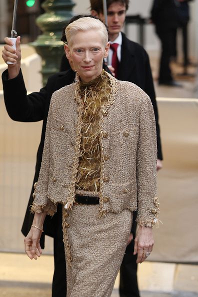 Alegeri vestimentare discutabile a avut și actrița britanică Tilda Swinton. Contrar așteptărilor legate de strălucirea asociată Paris Fashion Week, actrița în vârstă de 65 de ani a optat pentru un ansamblu sobru, mai degrabă potrivit pentru o zi la cursele de la Cheltenham sau pentru o cină într-un pub rural.