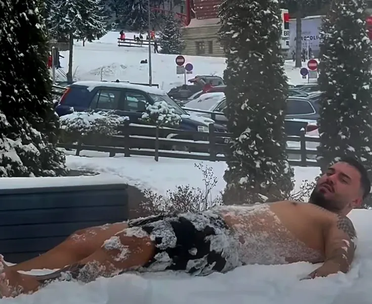 Manelistul Jador a mers chiar mai departe și s-a tăvălit în zăpadă la bustul gol, imaginile devenind rapid virale în mediul online.