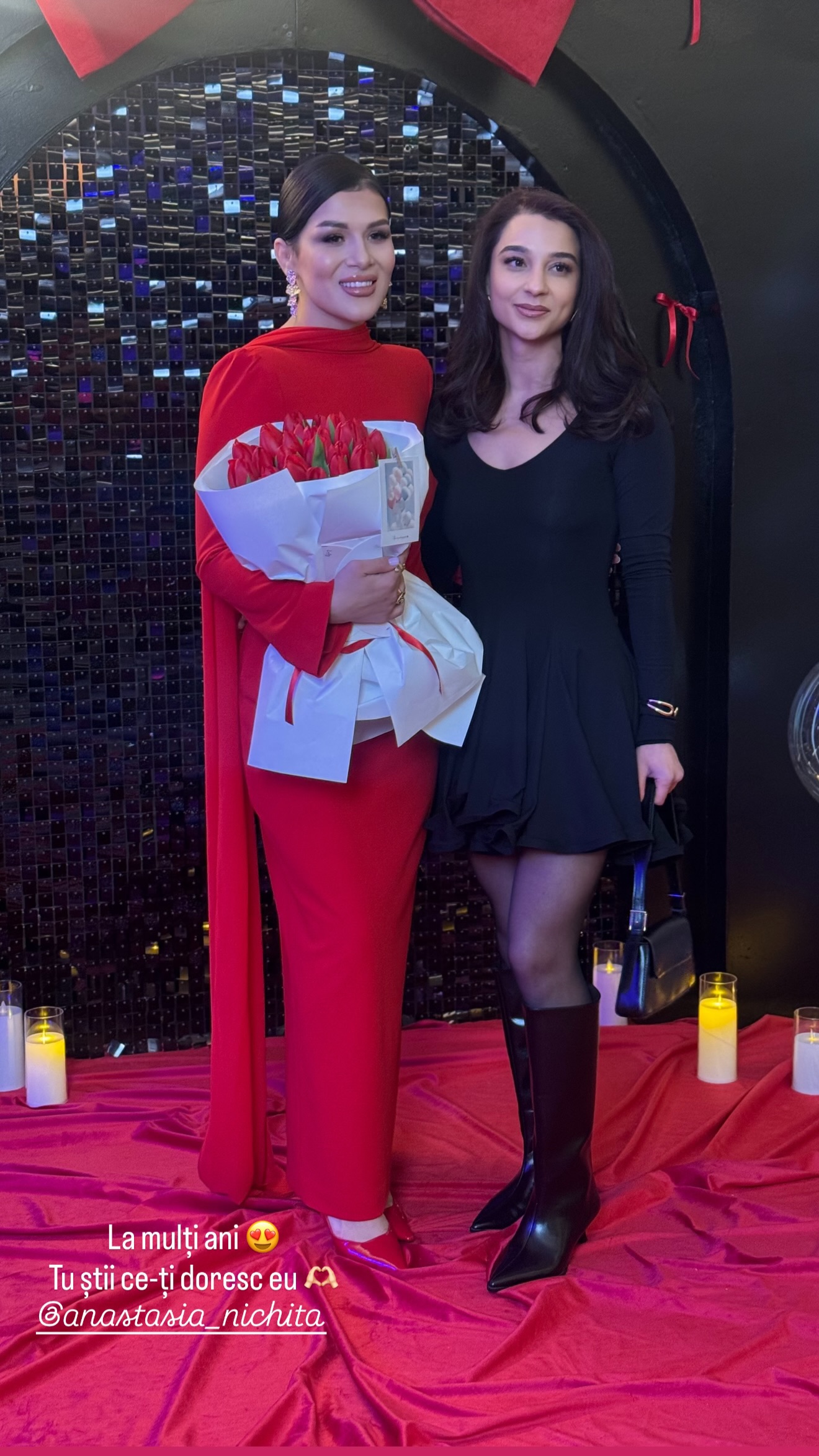 Sărbătorita a ales pentru această seară specială o ținută care i-a pus în valoare silueta impecabilă, optând pentru o rochie de culoarea roșie ce a atras toate privirile. Anastasia a radiat de fericire, fiind în permanență însoțită de partenerul ei, luptătorul Valeriu Mircea.
