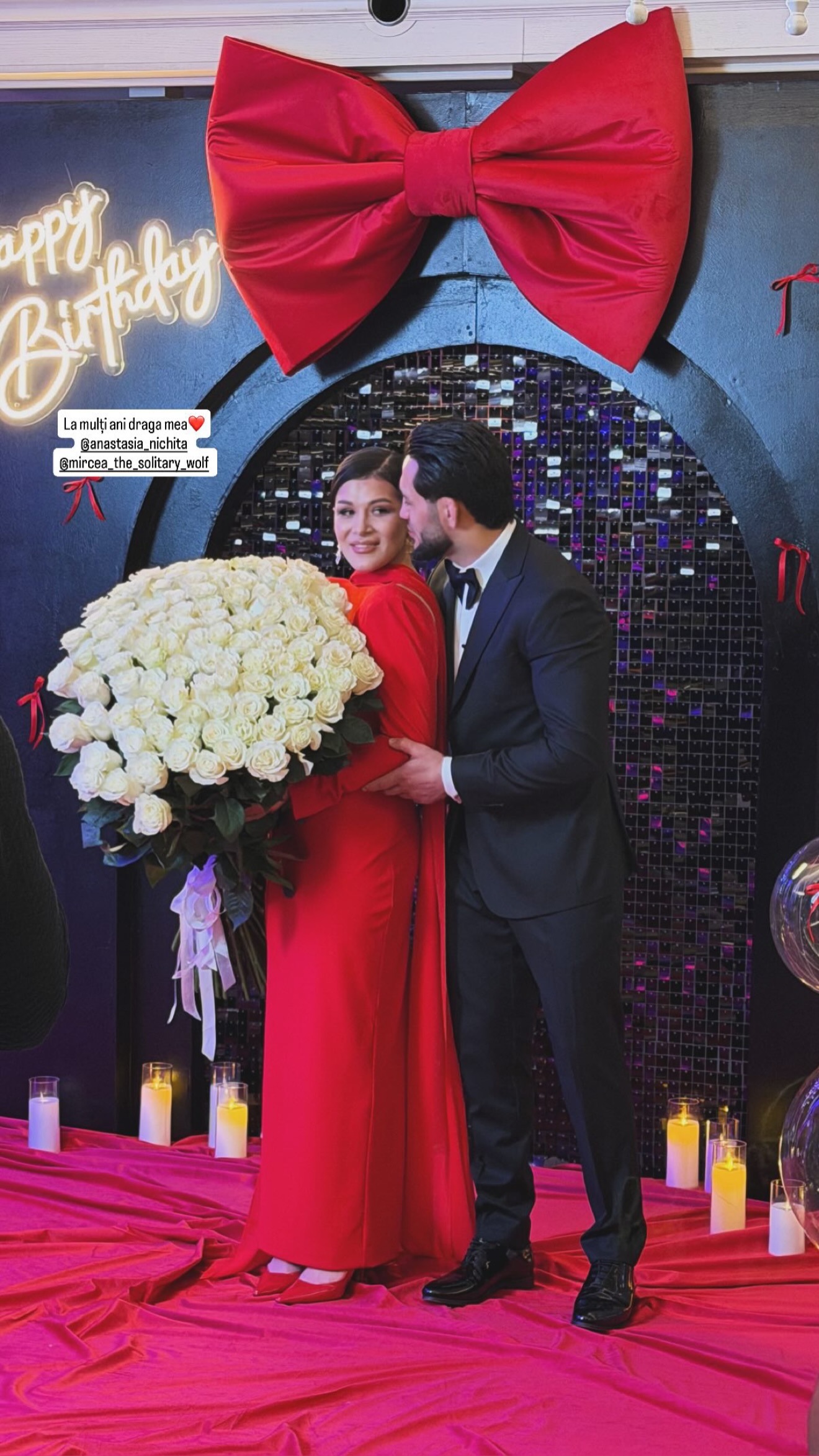 Sărbătorita a ales pentru această seară specială o ținută care i-a pus în valoare silueta impecabilă, optând pentru o rochie de culoarea roșie ce a atras toate privirile. Anastasia a radiat de fericire, fiind în permanență însoțită de partenerul ei, luptătorul Valeriu Mircea.