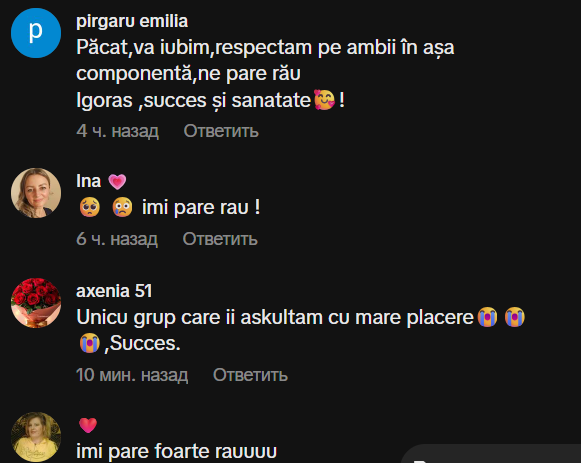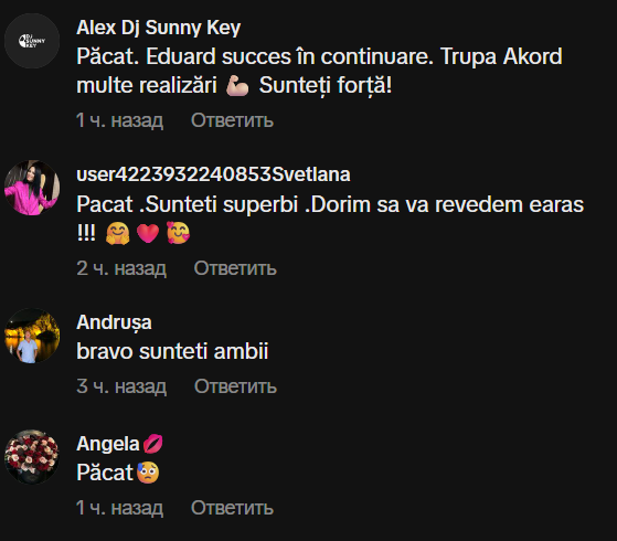 Vestea a stârnit un val de reacții în mediul online. Admiratorii formației și-au exprimat regretul față de despărțire, dar i-au urat succes atât lui Eduard Malareu, cât și trupei Akord în continuare.